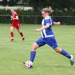 Die erste Torchance verzeichnen zwar wir, effizienter zeigten sich aber unsere Gegnerinnen, die in der 9. Minute das 0:1 erzielen. Aber unsere Antwort ließ nicht lange auf sich warten: drei Minuten später zieht Anna nach einer kurz ausgeführten Ecke einfach mal ab – 1:1! Und weil das mit der Ecke so schön war, schoss Josi nach einer wunderschönen Ecke von L das 2:1. Kurz darauf mussten wir leider das 2:2 hinnehmen, und trotz einigen Torchancen auf unserer Seite wurde das Spiel etwas zerfahrener und wir kassierten vor der Halbzeit noch das 2:3.