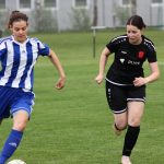 Schon in der zweiten Minute hatte C. eine erste Chance für uns, die die Torhüterin noch parieren konnte. Kurz drauf war auch unsere Abwehr das erste Mal gefordert, konnte die Chance mit anschließender Ecke aber sicher klären. Im Gegenzug schickte C. M. auf der linken Seite, ihre Flanke kam jedoch nicht im Sechszehner an. In der Folge häuften sich unsere Chancen, erst probierte es H., dann nochmal C., dann brachte M. eine schöne Ecke in den Sechszehner – noch ohne Erfolg. S. war auf der anderen Seite heute hellwach und konnte viele Gegenangriffe früh auf ihrer rechten Seite unterbinden. Nach einer Viertelstunde klappte es endlich für uns: Wir spielten uns über unsere linke Seite schön von hinten raus, drehten es dann über M. in die Mitte, die dort Charlotte schickte. Charlotte schob den Ball ins lange Eck zur verdienten 1:0 Führung. Mit einigen Wechseln im Mittelfeld brachten wir frische Kräfte ins Mittelfeld und konnten weiter viel Druck nach vorne machen. Nach einer halben Stunde notierten wir einen Lattentreffer.