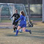 Die ersten zwanzig Minuten fanden vor allem im Mittelfeld statt und viele Fehlpässe im letzten Drittel auf beiden Seiten störten immer wieder den Spielfluss. Unsere Abwehr war von Anfang an wach und B. gewann auf der rechten Seite immer wieder wichtige Laufduelle und Zweikämpfe, sodass Flanken in den Strafraum verhindert werden konnten. Vorne hatte C. nach einem durchgesteckten Ball die erste Möglichkeit für uns: auf ihrem langen Weg alleine auf die Torhüterin hatte sie wohl zu viel Zeit zum Nachdenken und setzte den Ball leider knapp links vorbei. Nach einer halben Stunde hatten die Gäste ihren ersten Torschuss, den A. sicher parierte. Kurz vor der Halbzeit drückten wir nochmal: erst hatte C. mit einem Freistoß an der linken Strafraumkante eine gute Schussposition, setzte den Ball aber noch zu zentral. Kurz danach versuchte M. einen Heber über die herausgelaufene Torhüterin, der jedoch ebenfalls knapp vorbei ging. So blieb es beim torlosen Unentschieden zur Pause.