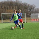 Die ersten Minuten waren von vielen Einwürfen auf beiden Seiten geprägt. Der starke und böige Wind machte es beiden Seiten sichtbar schwer. Zu Beginn musste sich unsere neu formierte Abwehr noch etwas finden, sodass Vierkirchen gleich zu zwei Abschlüssen kam, die unsere Keeperin aber sicher halten konnte. Kurz danach hatten wir über unsere linke Seite den ersten erfolgreichen Angriff, der Abschluss ging aber noch über das Tor. Eine kurz darauf folgende Ecke für uns landete direkt im Aus – dieses Mal lag das nicht am Wind, sondern am rutschigen Platz. Ein Zwischenfazit aus den Spielnotizen fasst die ersten Minuten gut zusammen: Wir lassen den Ball besser in unseren Reihen laufen, aber es sind viele Fehlpässe dabei. Vierkirchen verteidigt gut, ist nach vorne aber weniger präsent, auch wenn die zwei Torschüsse es anders vermuten lassen. Nach einer Viertelstunde schoss dann unser Zehner das erste Tor des neuen Jahres: Nach einem schönen Doppelpass mit unserer Stürmerin segelte der Weitschuss über die Torhüterin zum 1:0. Gleich nach Wiederanpfiff gelang uns ein schöner Angriff über unsere linke Seite, der Abschluss ging aber leider ebenfalls links am Tor vorbei. Zeitweise gelang es uns sehr gut, uns über präzises Kurzpassspiel nach vorne zu kombinieren. Im letzten Drittel wurden unsere Pässe allerdings oft zu ungenau und so blieb es bei wenigen Abschlüssen. Nach einer halben Stunde konnte sich unsere Abwehr auszeichnen: Nach einem eigenen Ballverlust half unsere rechte Verteidigerin unserem Keeper auf der Linie und die beiden sicherten in Zusammenarbeit die knappe Führung. Währendessen versuchten sich unsere zwei Auswechselspielerinnen durch (O-Ton Notizen) „Hüpfen wie ein junges Reh“ warm zu halten. Kurz vor der Halbzeit erhöhte unser Sturm in gemeinsamer Arbeit zum verdienten 2:0.