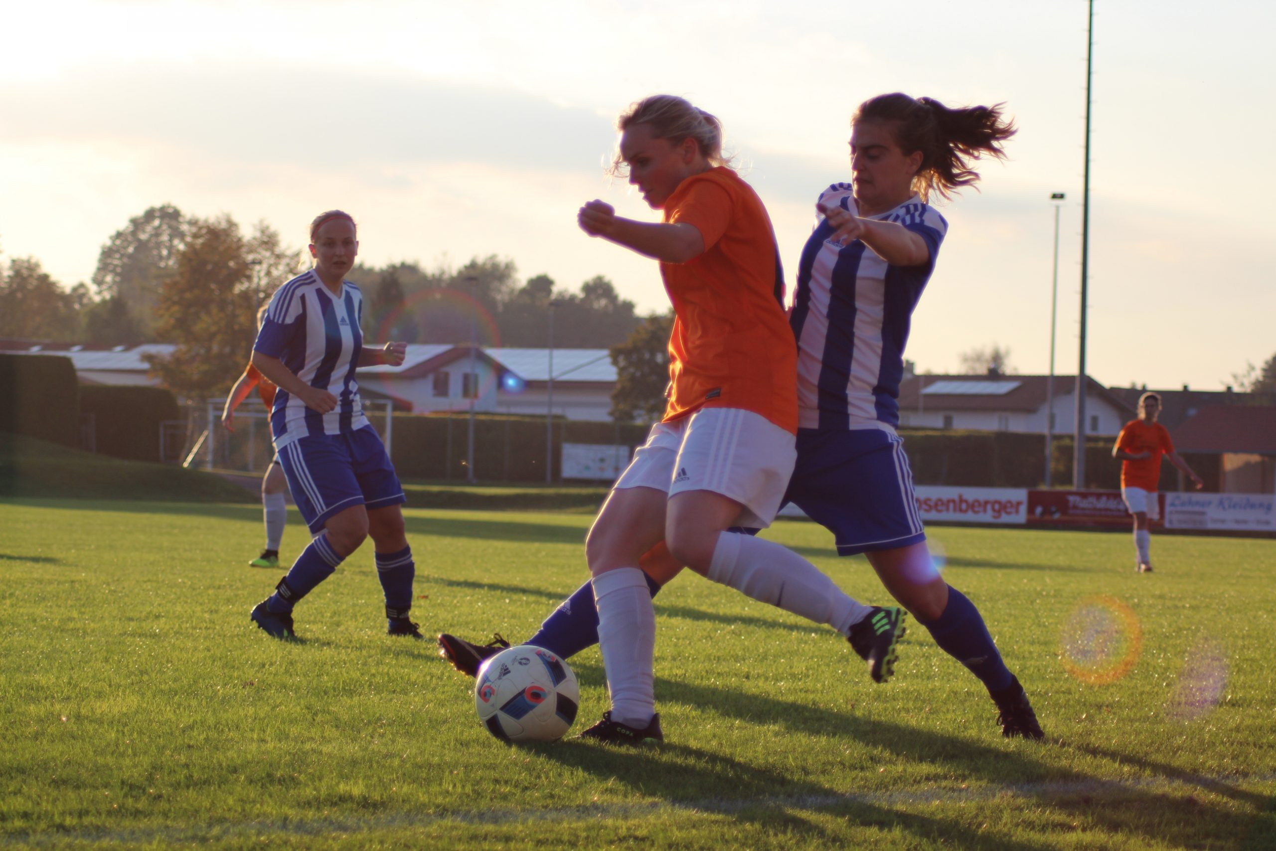 Mit gut 25 Minuten Verspätung starteten wir in die Partie. Der Gegenwind und das gute Pressen von Laim erschwerte es uns rauszuspielen, sodass wir uns zwar beim Abstoß immer gut befreien konnten, aber der nächste Pass auf die Mitspielerin gelang selten. In der 20. Minute konnte sich Laim über eine Soloaktion ihrer Außenspielerin durch den Strafraum tanzen und erzielte das 0:1. Wir stellten ein wenig um und konnten somit die starke Offensive Laims einbremsen. Weiterhin blieb es im Strafraum aber gefährlich, erstaunlicherweise durch uns selbst. Durch den Wind kamen hohen Bälle unkontrolliert in die Mitte, sodass Cara zwei mögliche Eigentore verhindern musste.