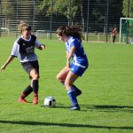 Zu Beginn gelang es uns auch ganz gut vorne Druck zu machen. Gleich in der ersten Minute flankte Sabi in den Strafraum, die Mädels der Spielgemeinschaft klärten zur Ecke. Etwas, dass sich im Laufe des Spiels noch unzählige Male wiederholen sollte. Leider führten unsere vielen Ecken aber nicht zum gewünschten Erfolg. In der 12. Minute waren es dann die Gegnerinnen, die nach einem hohen Ball von der linken Seite gemeinsam mit ihren zahlreichen Fans jubeln durften. Wie schon in der letzten Woche lag es an uns einen Rückstand auszugleichen. Alle unsere Angriffe endeten jedoch mit Ecken, bei denen wir nicht unsere Effektivität der Vergangenheit zeigen konnten. Dann endlich, 10 Minuten nach unserem Rückstand konnte unsere Lokomotive sich alleine durchsetzen und schoss den Ausgleich. Nur 8 Minuten später gerieten wir nach Kuddelmuddel vor unserem Tor leider erneut in Rückstand. Keine drei Minuten später konnte Sinem einen Schuss zwar noch parieren, der Nachschuss landete dann aber im Netz – 3:1. Peter stellte etwas um und wechselte einmal durch. Während Sinem mehrmals einen höheren Rückstand vermied, war auch die gegnerische Torwärtin bei unseren Schüssen leider immer im Weg.